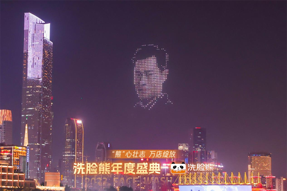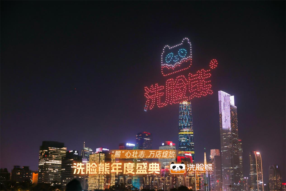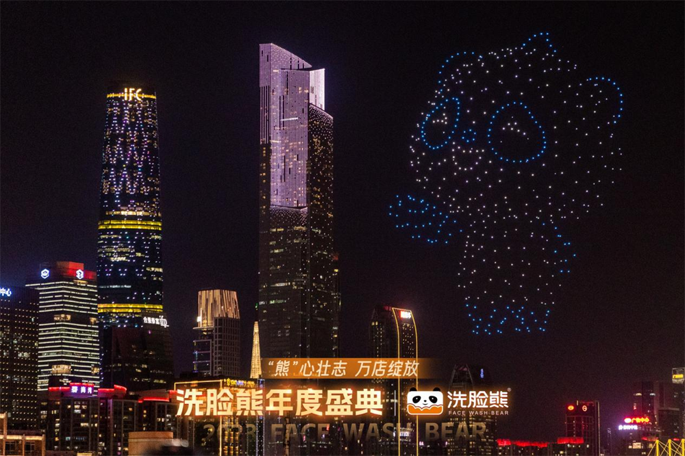 當天的無人機表演,是洗臉熊慶祝2023年度盛典的活動之一。